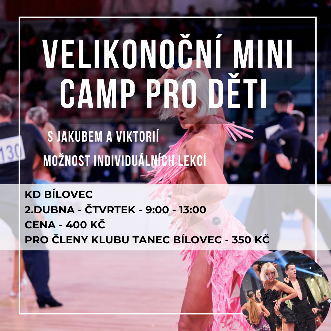 Chtěli bychom pozvat všechny děti našich tanečních kroužků v Bílovci a ve Studénce na jednodenní mini soustředění, které proběhne 6. 4. v malém sále KD Bílovec v čase 8:30 - 12:30.